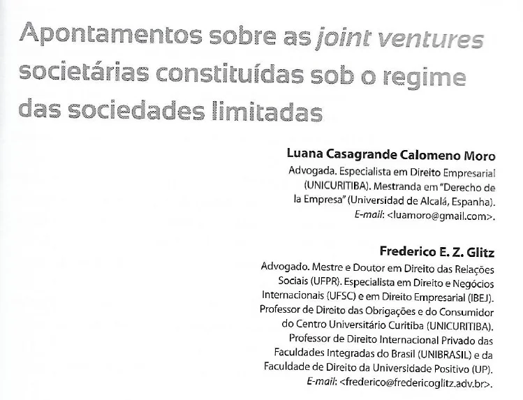 APONTAMENTOS SOBRE JOINT VENTURES SOCIETÁRIAS
