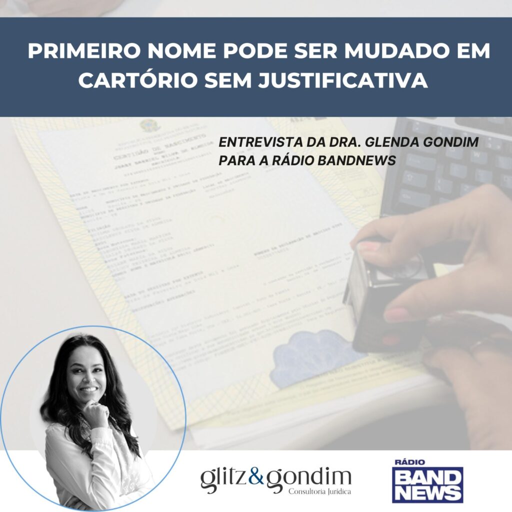 Primeiro nome pode ser mudado em cartório sem justificativa (BandNews FM)