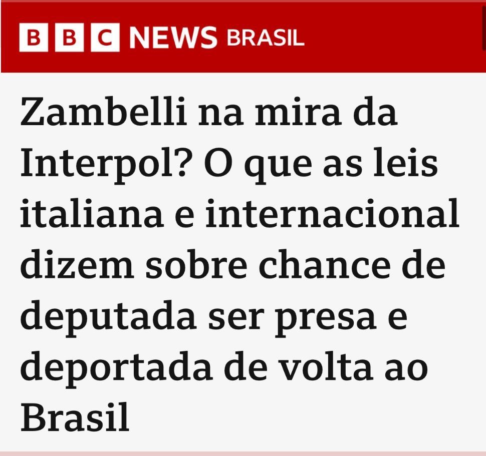 Zambelli na lista da Interpol: o que as leis italiana e internacional dizem sobre chance de deputada ser presa e deportada de volta ao Brasil (BBC)